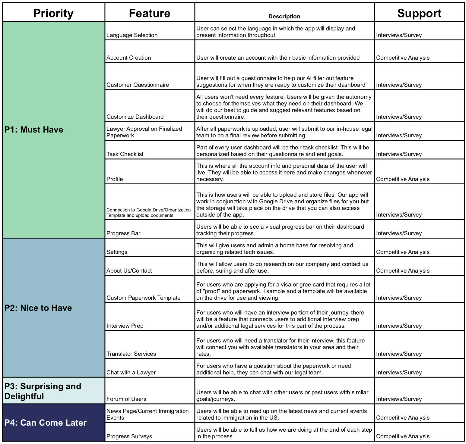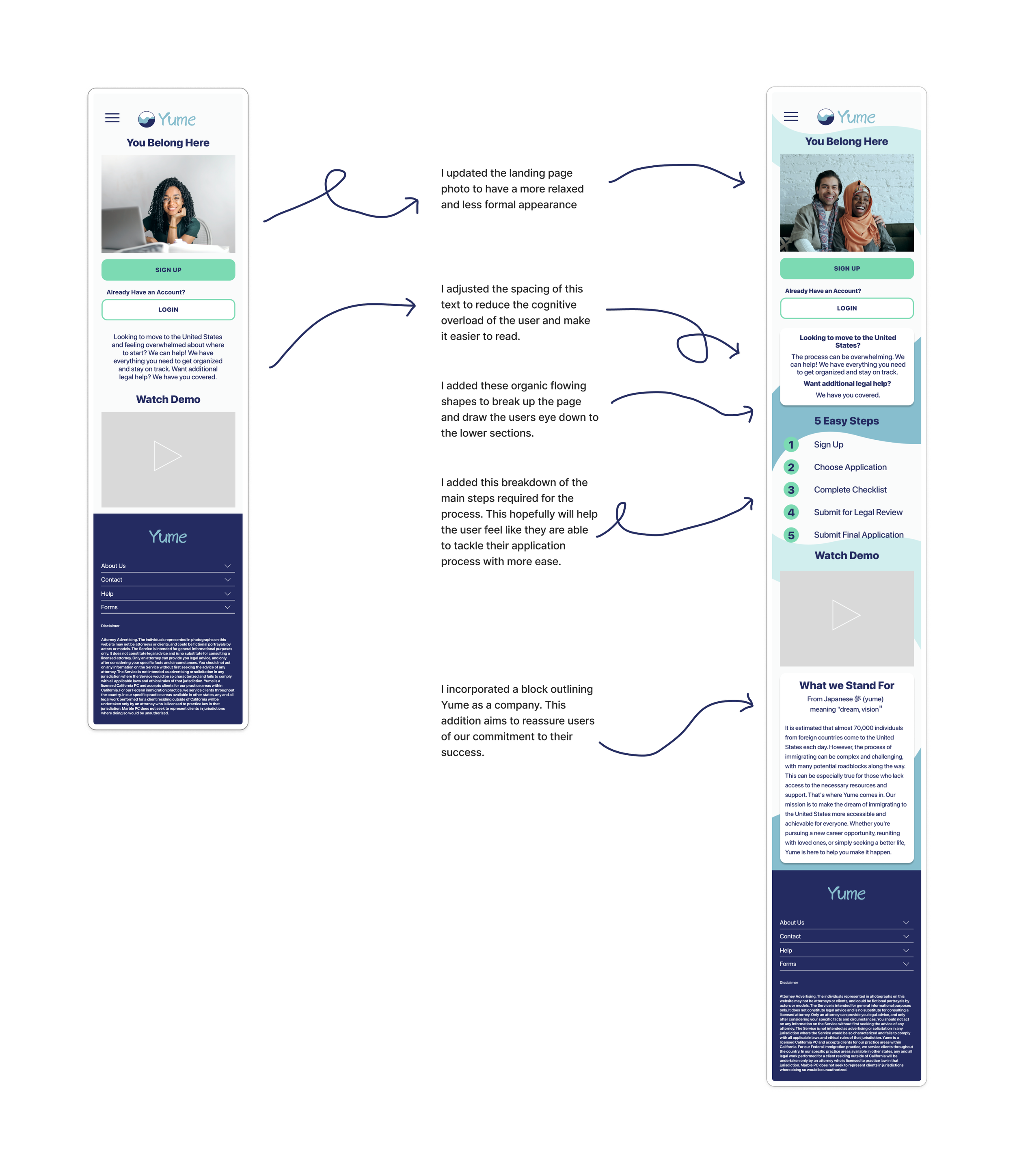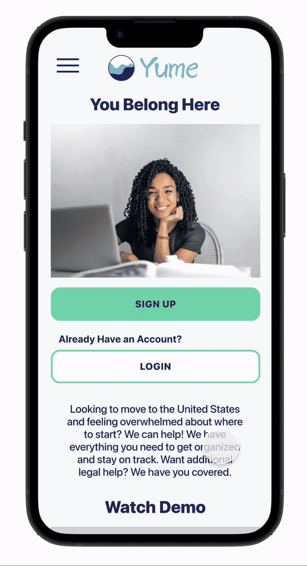 Nearly 70,000 foreigners arrive in the United States every day. While there are many different avenues immigrants can take to get here, many methods can be confusing, time-consuming, and generally lacking accessibility. Some of the main gaps in accessibility are language, time, and finances. By creating a product that helps bridge these gaps, I hope to alleviate some of the stress for people going through the process.