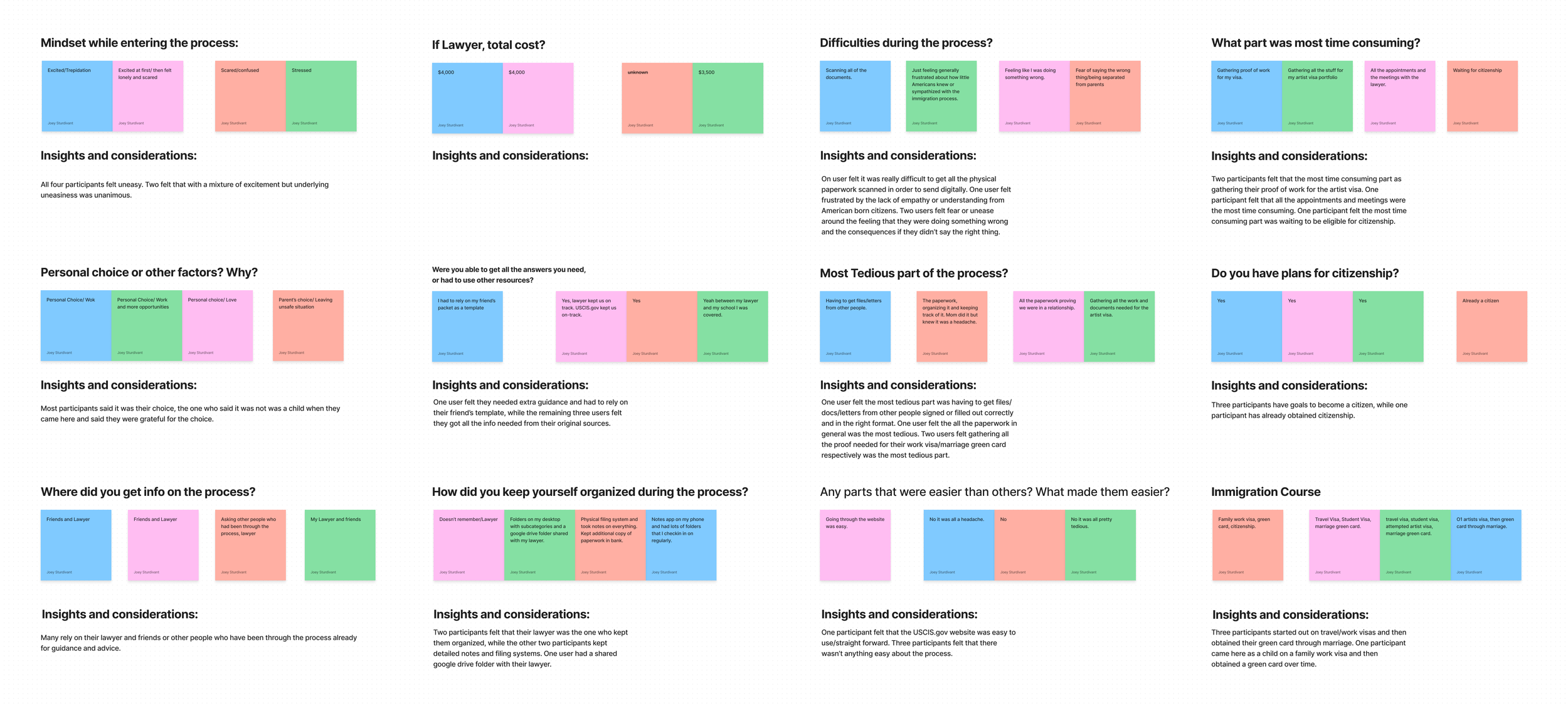 During the user research phase, I crafted user personas based on the poignant narratives and firsthand experiences shared during interviews. These personas served as the cornerstone of my design process, allowing me to empathize with the diverse spectrum of individuals navigating the US immigration system. By intimately understanding their unique needs, challenges, and aspirations, I could tailor the design of the platform to accommodate a wide range of users, ensuring accessibility and inclusivity at every stage of the immigration journey.